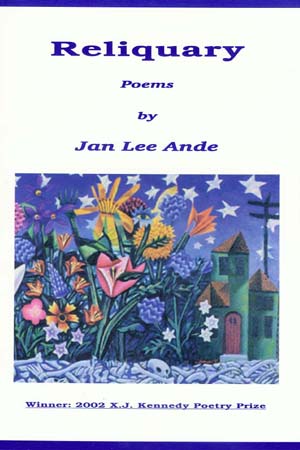 Jan Lee Ande’s first book, Instructions for Walking on Water, won the 2000 Snyder Prize from Ashland Poetry Press. Her poems appear in New Letters, Image, Nimrod, Notre Dame Review, Mississippi Review, Poetry International and the anthologies Place of Passage (Story Line Press) and Jubilation (Beat Books). She teaches poetry, poetics, and history of religions at Union Institute & University. Ande is from the Pacific Northwest.